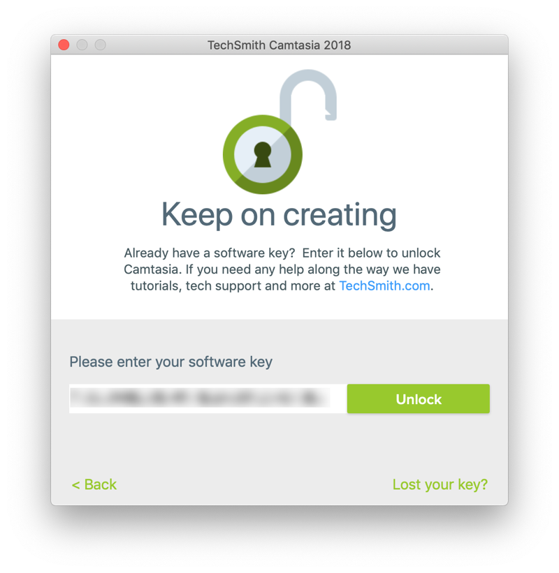 Mac Camtasia Does Not Remember Key